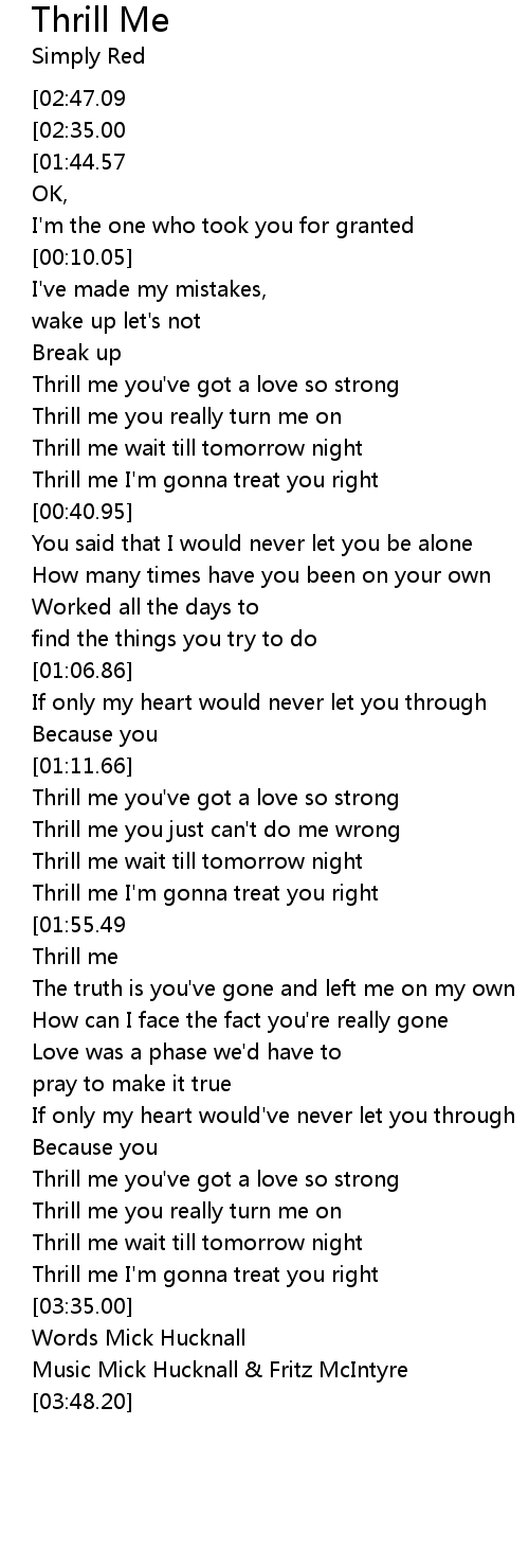 | [03:49.97][02:35.00][01:39.00][00:43.49] |