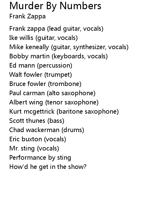 | Frank zappa (lead guitar, vocals) | |