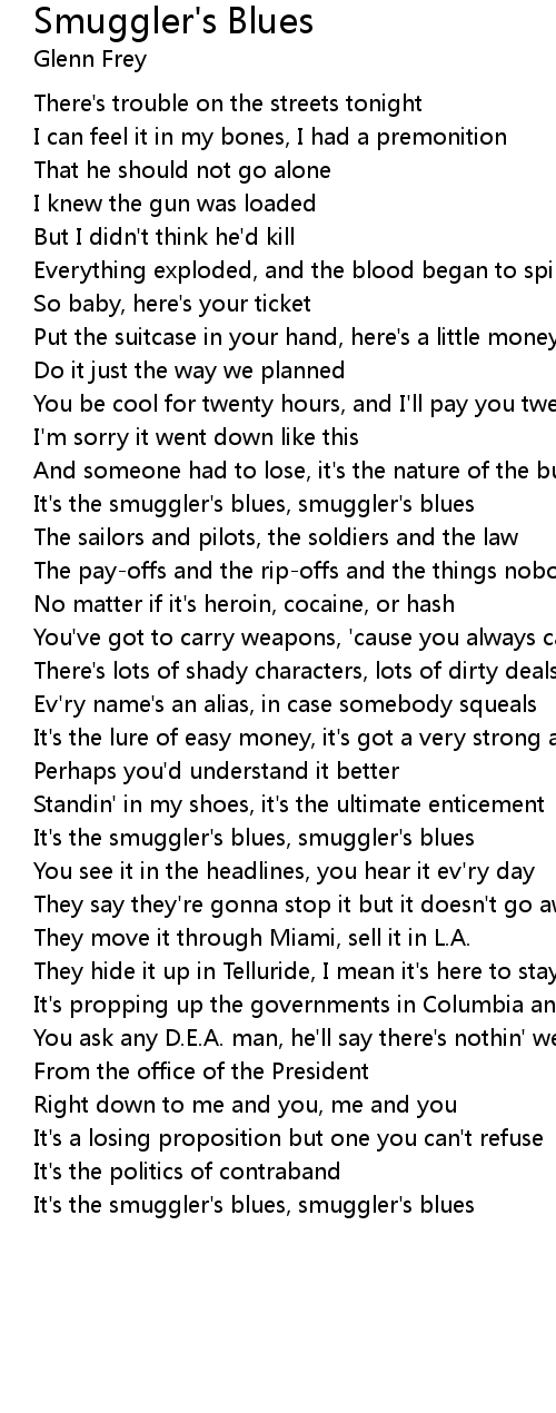 It's the smuggler's blues, smuggler's blues |