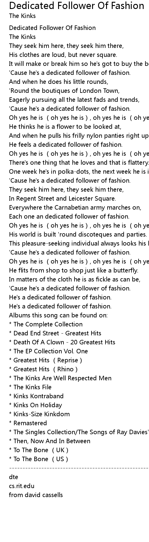| Song | Dedicated Follower Of Fashion |