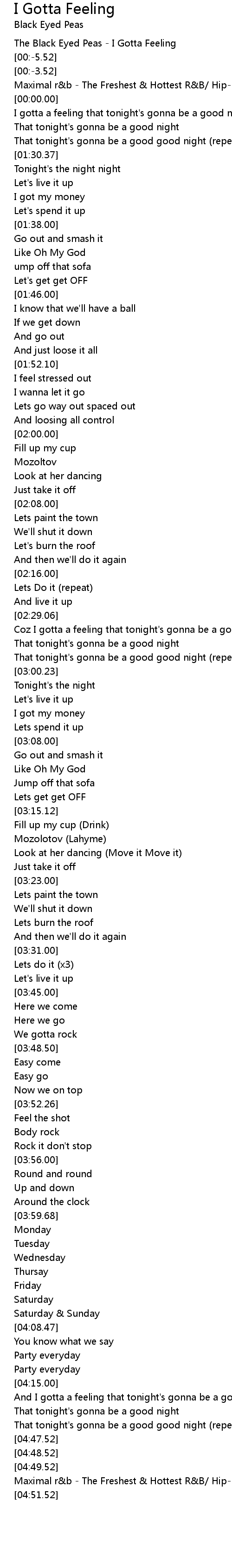 The Black Eyed Peas - I Gotta Feeling |
