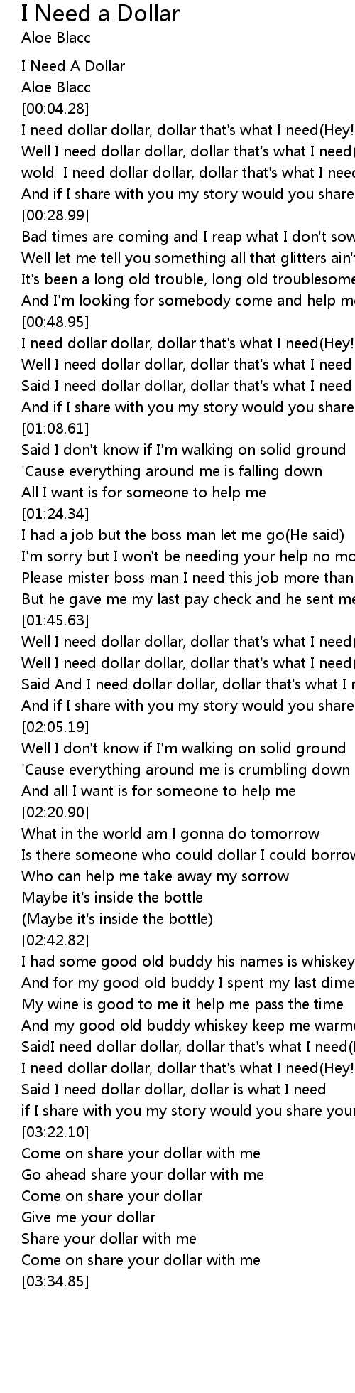 | [00:58.98] | Said I need dollar dollar, dollar that's what I need |