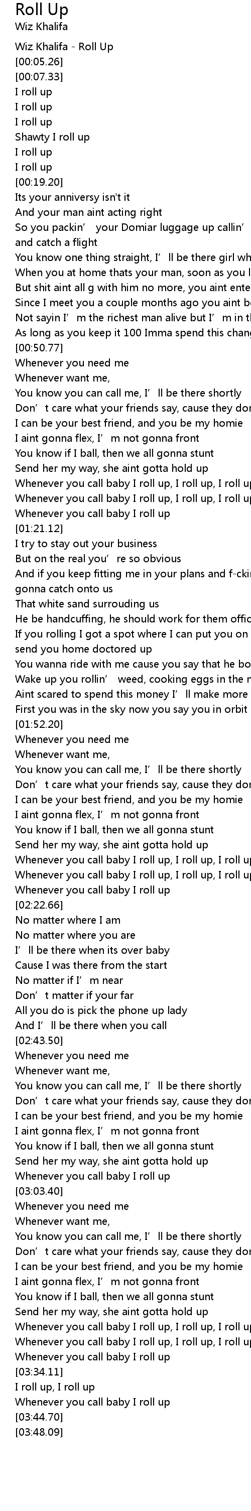 | [03:26.45] | Whenever you call baby I roll up, I roll up, I roll up |