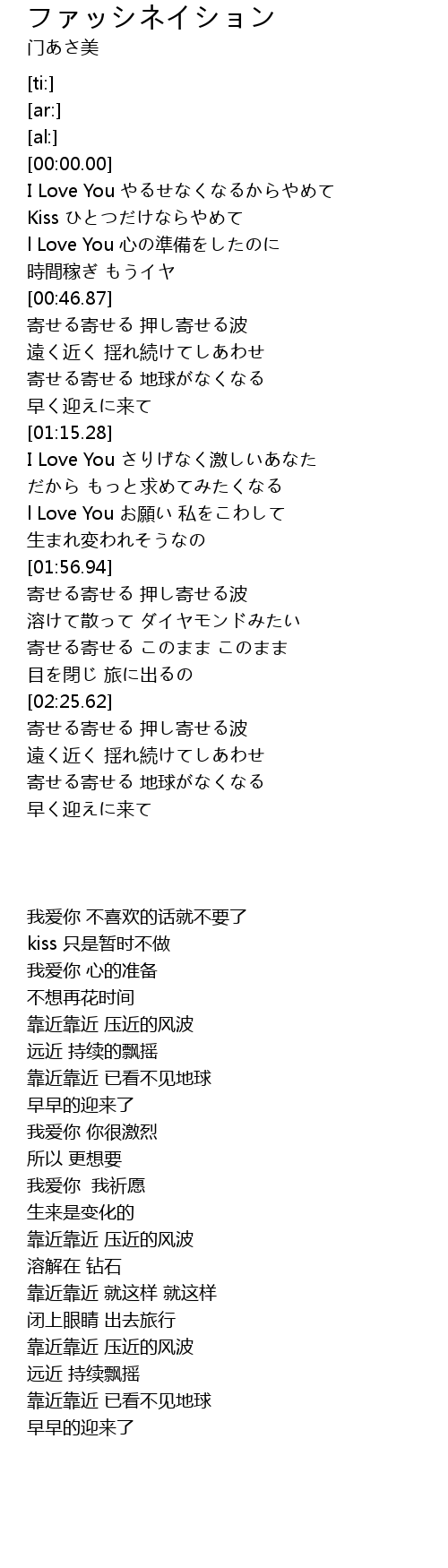 | [01:58.86] | 寄せる寄せる 押し寄せる波 |