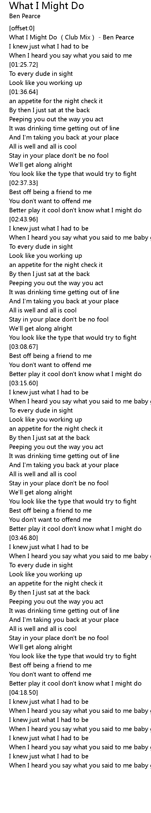 | [00:00.72] | What I Might Do Club Mix Ben Pearce |
