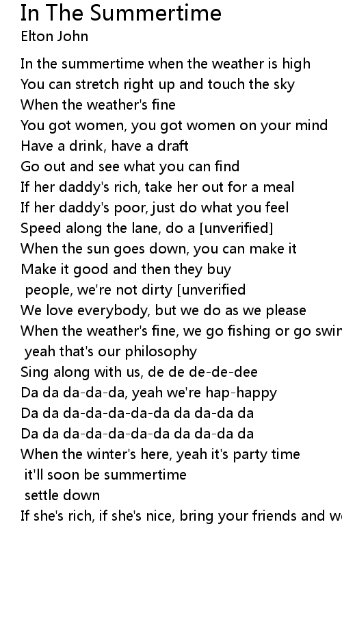 In the summertime when the weather is high |