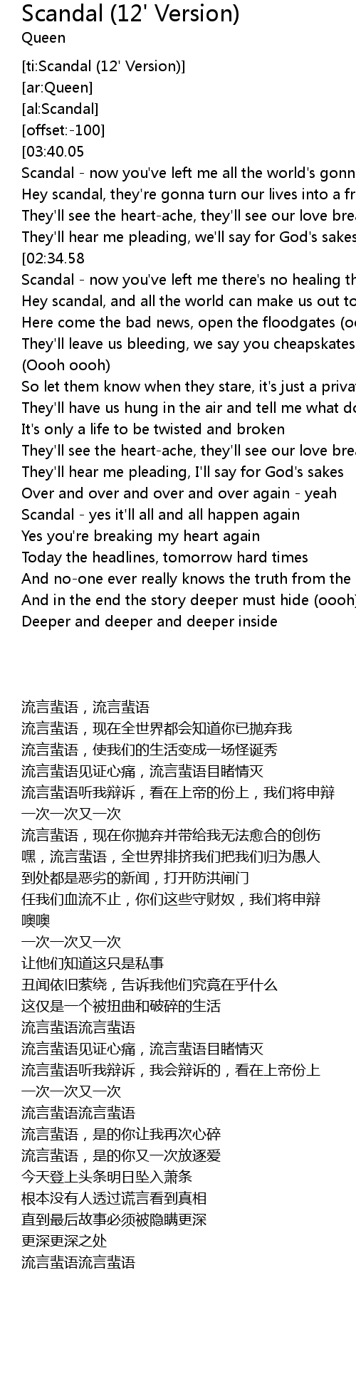 | [00:33.65][03:40.05][05:00.83][06:03.36] | Scandal, scandal |