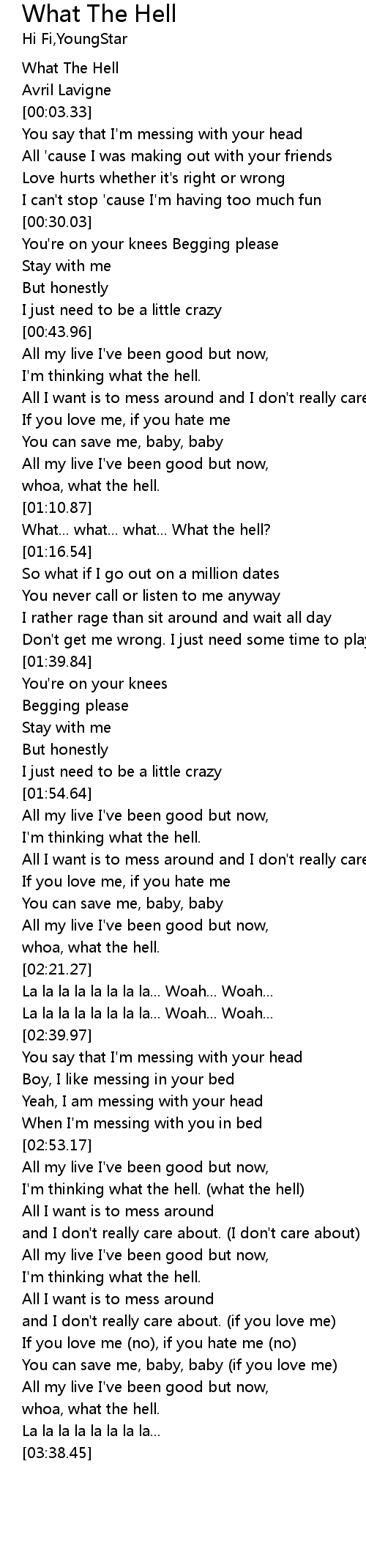 | [00:00.22] | What The Hell |