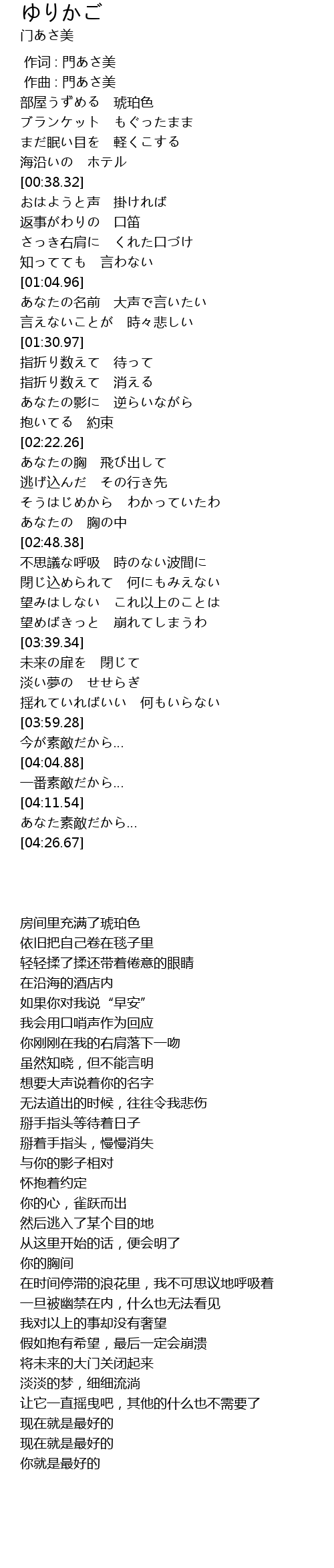| [03:52.55] | 揺れていればいい 何もいらない |
