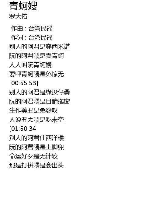 | [00:41.01] | 人人叫阮青蚵嫂 |