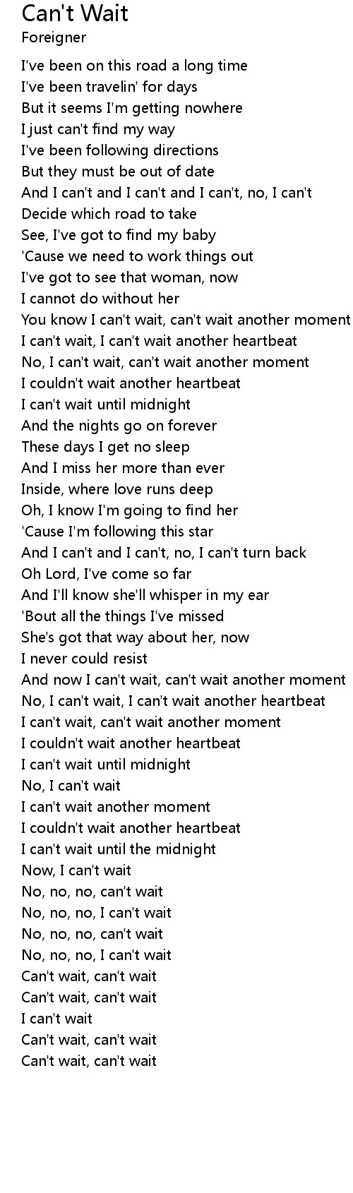 No, I can't wait, can't wait another moment |