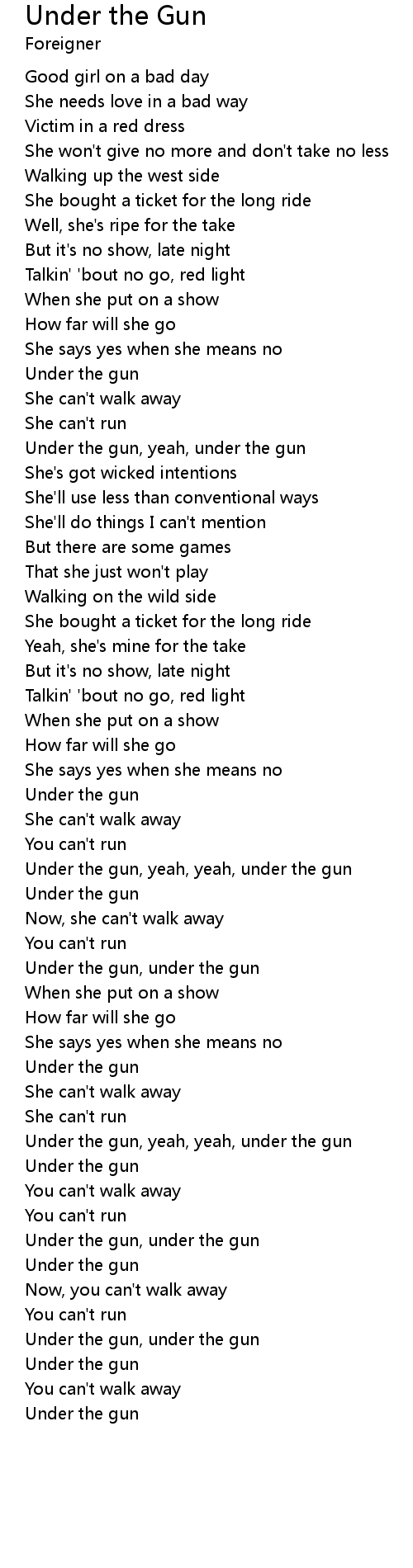 Under the gun, yeah, yeah, under the gun |