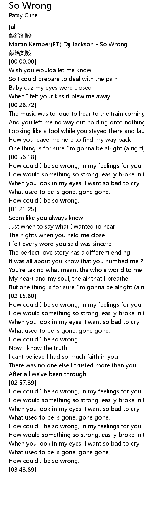 | [03:00.69] | How could I be so wrong, in my feelings for you |