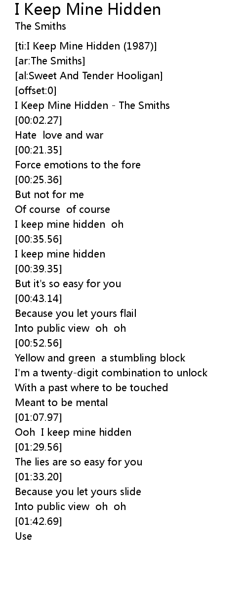 [ti:I Keep Mine Hidden (1987)] |