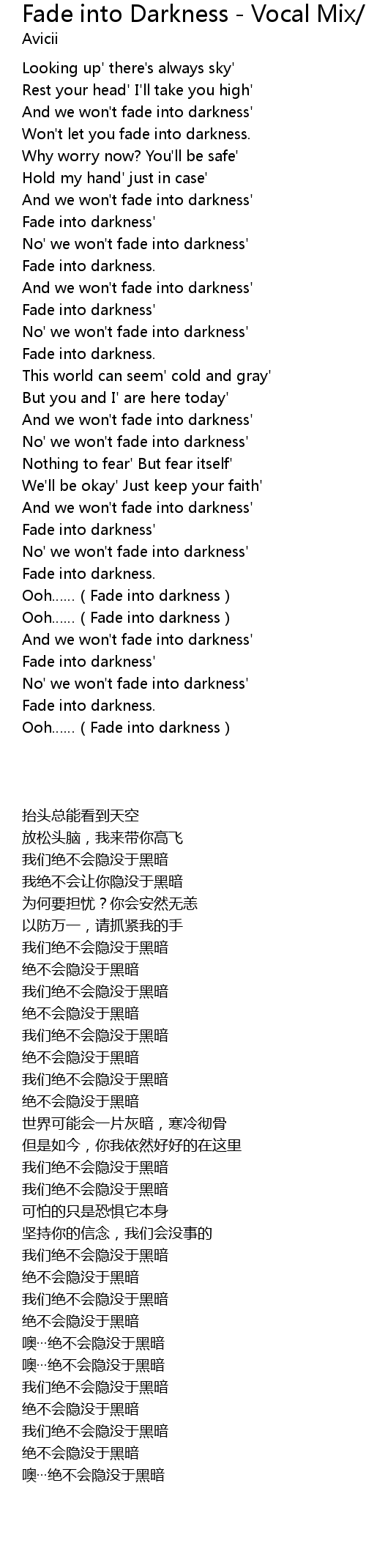 | Song | Fade into Darkness - Vocal Mix/edit |