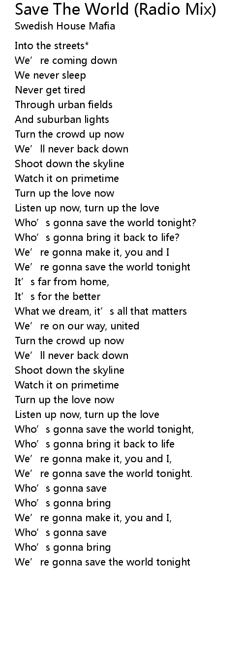 | Who' s gonna save the world tonight, | |
