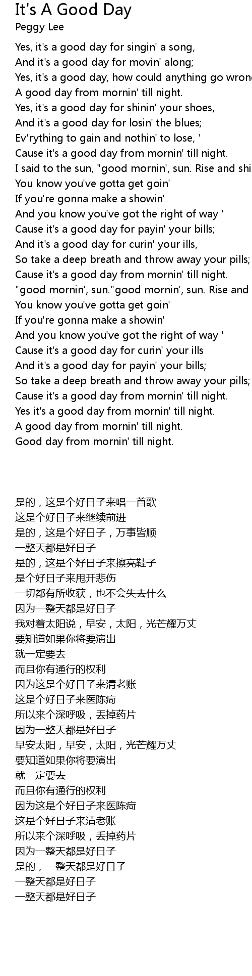 Yes, it's a good day for singin' a song, |