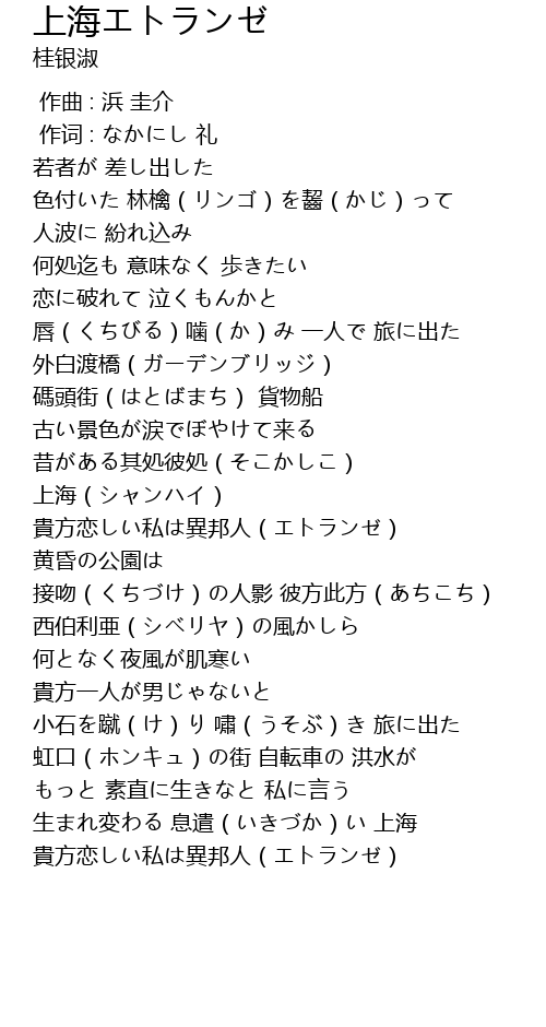 | Song | 上海エトランゼ |
