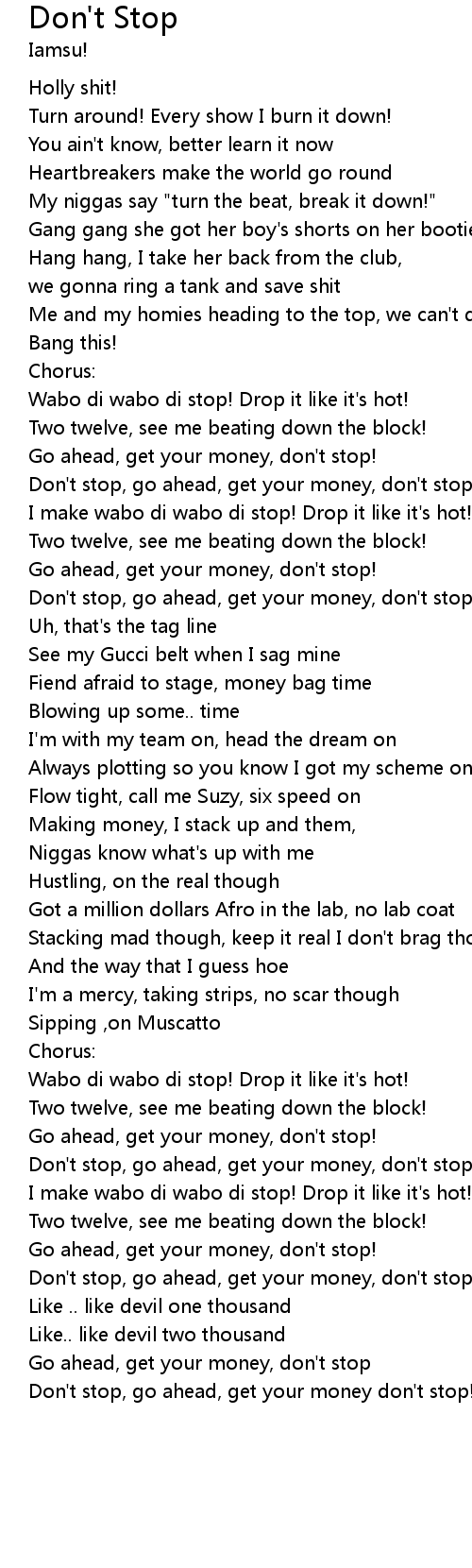 Don't stop, go ahead, get your money don't stop! (x2) |