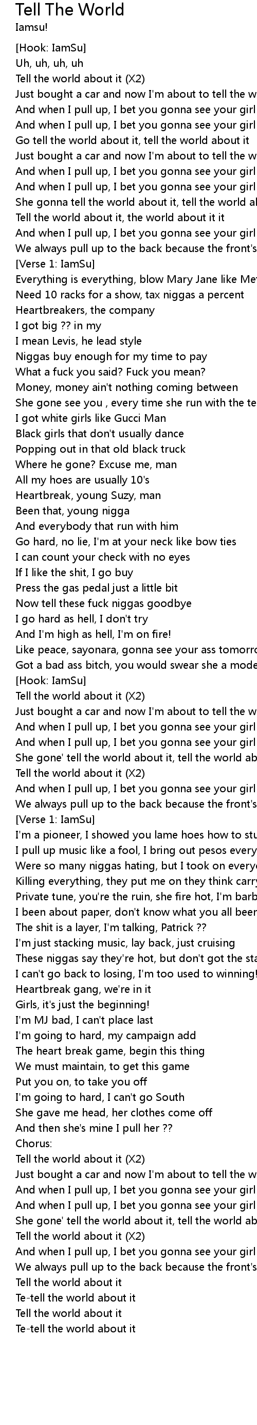 Tell the world about it (X2) |