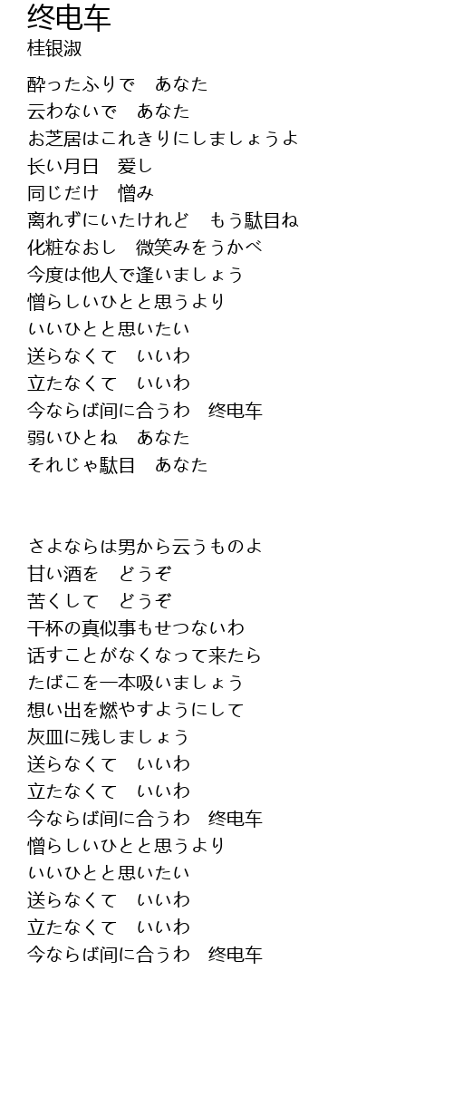 | 今ならば间に合うわ 终电车 |