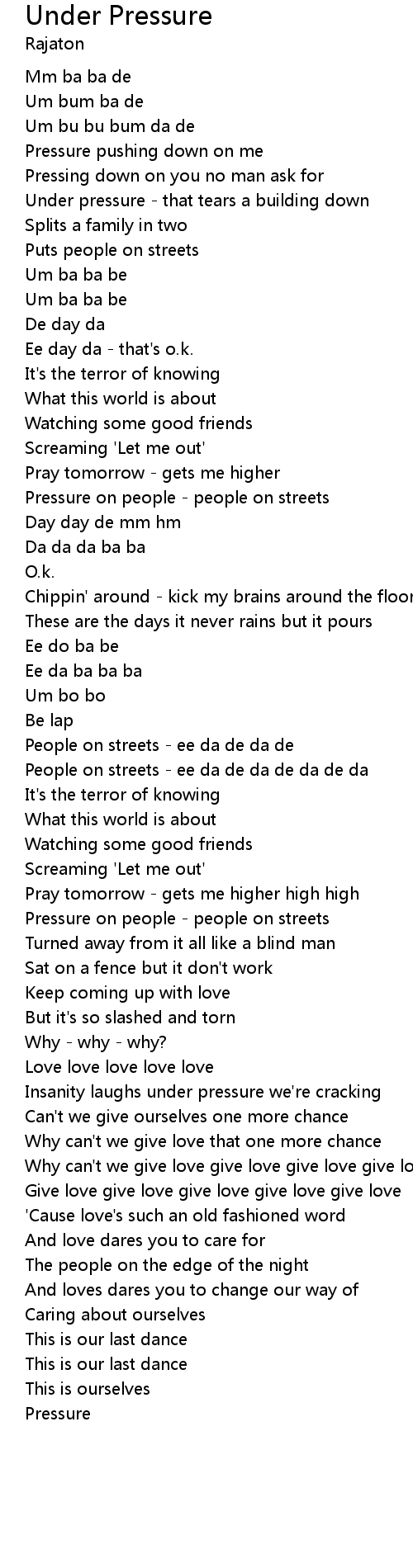 Pressing down on you no man ask for |