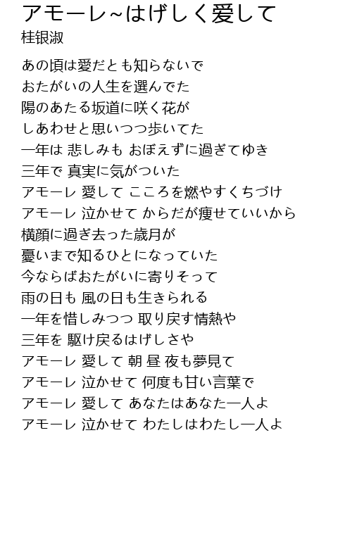 | アモーレ 泣かせて 何度も甘い言葉で | |