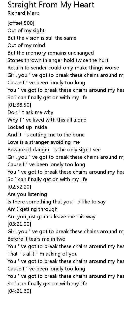 | [03:30.70] | Girl, you ve got to break these chains around my heart |