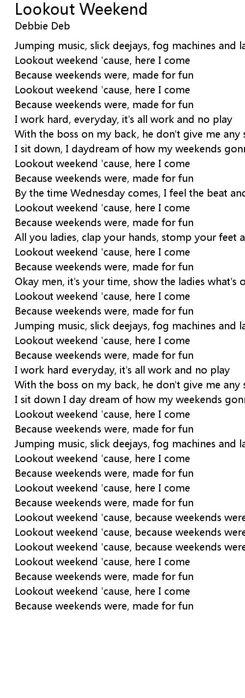 By the time Wednesday comes, I feel the beat and I wanna have fun |