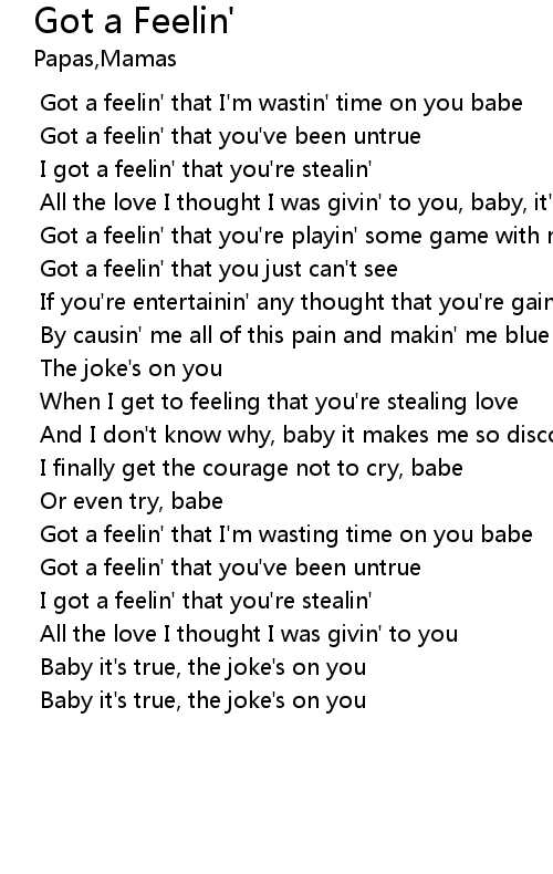 | [02:04.136] | I got a feelin' that you're stealin' |