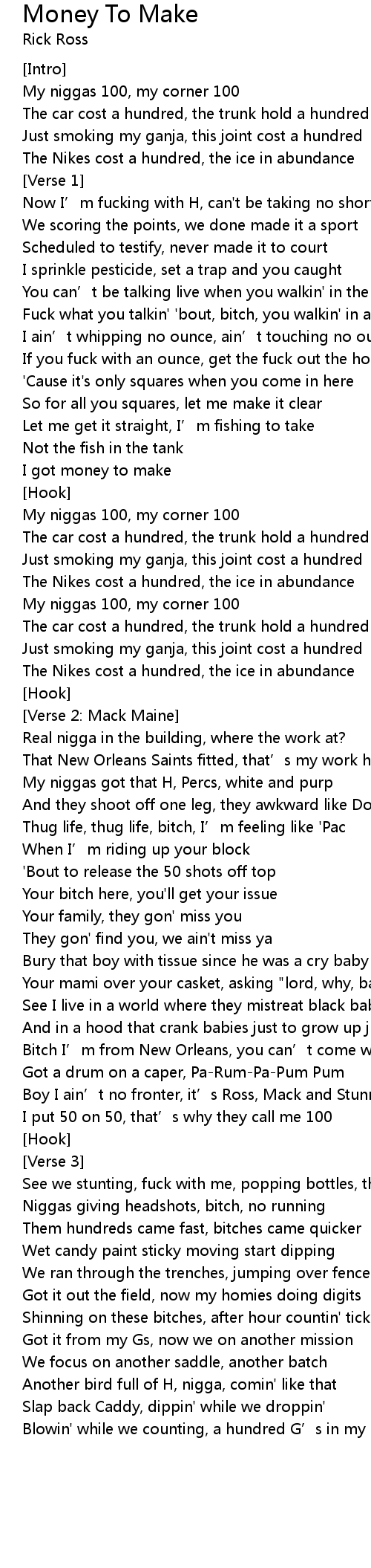 | See we stunting, fuck with me, popping bottles, throwing money | |