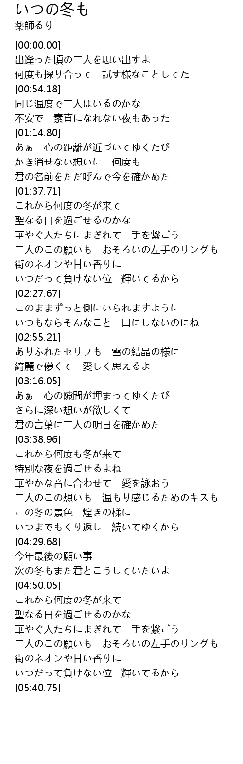 | [04:40.34] | 次の冬もまた君とこうしていたいよ |