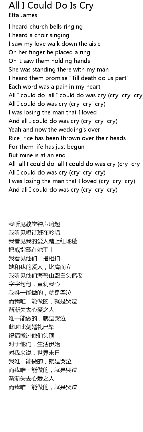 All I could do all I could do was cry (cry cry cry) |