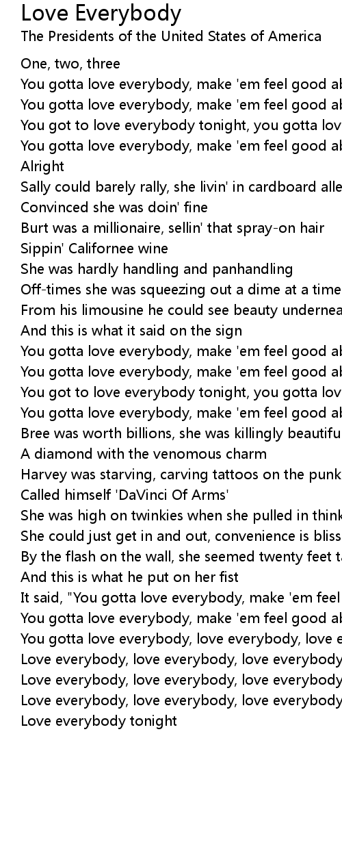 You gotta love everybody, make 'em feel good about themselves, yeah |