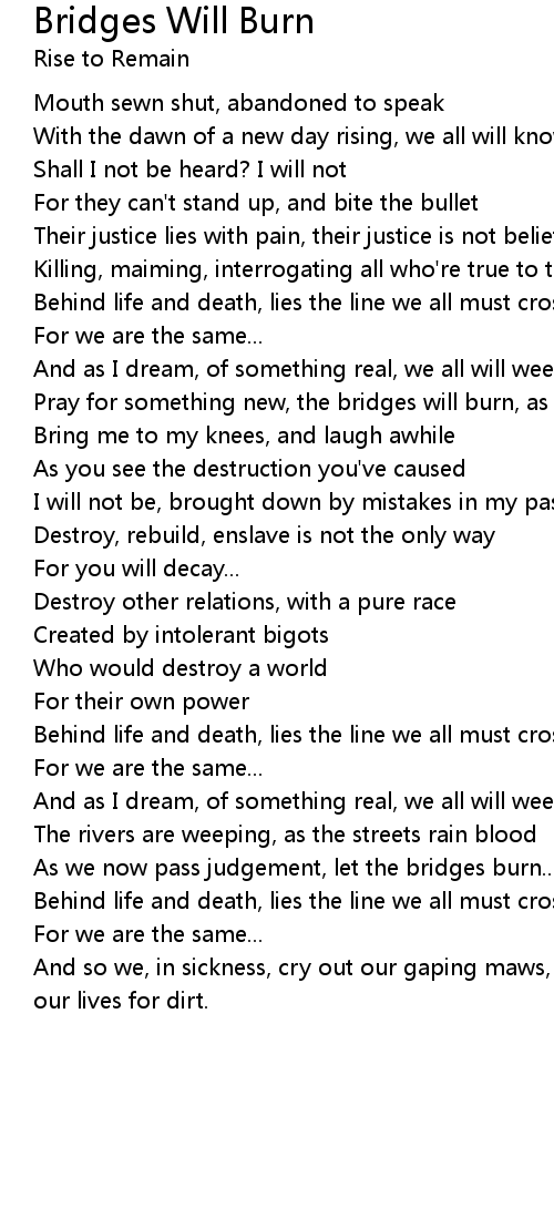 Pray for something new, the bridges will burn, as we cast our divides... |