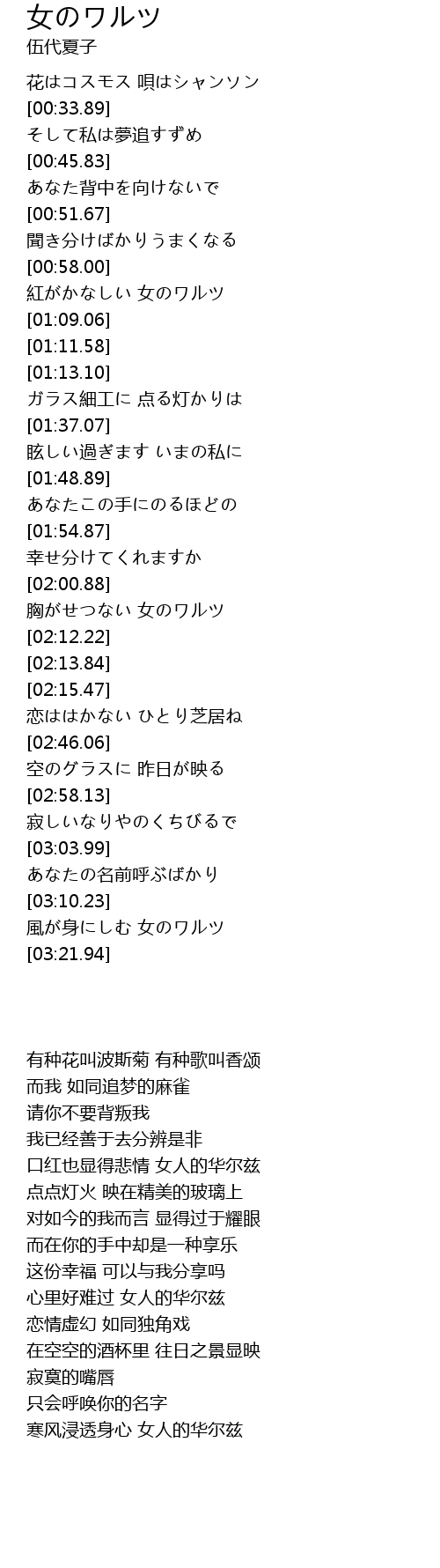 風が身にしむ 女のワルツ |