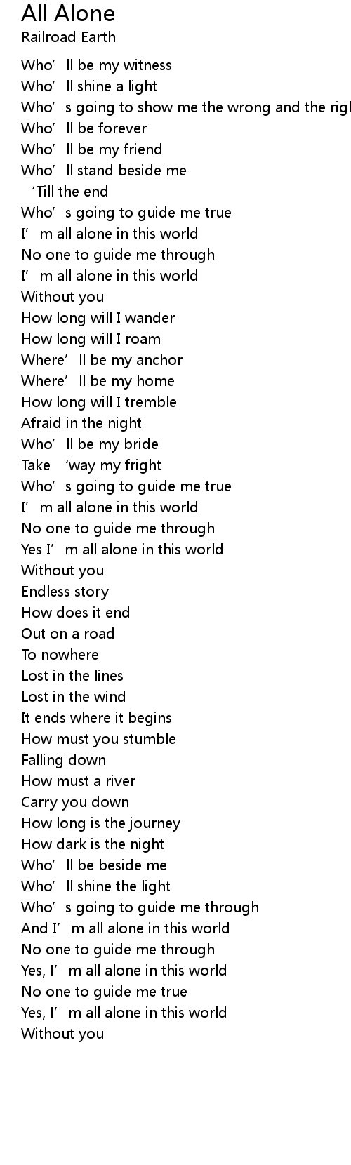 | Yes I’m all alone in this world | |