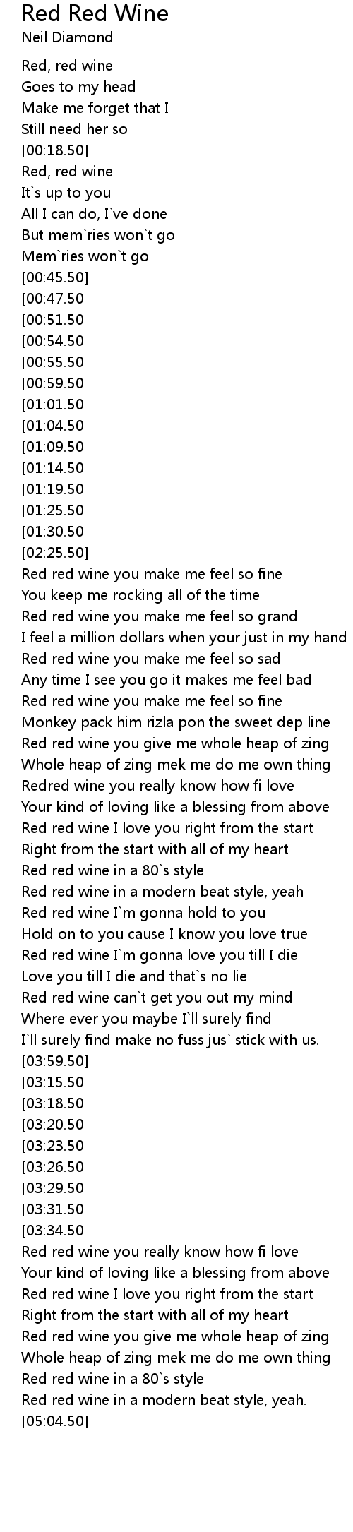 Red red wine you make me feel so fine |