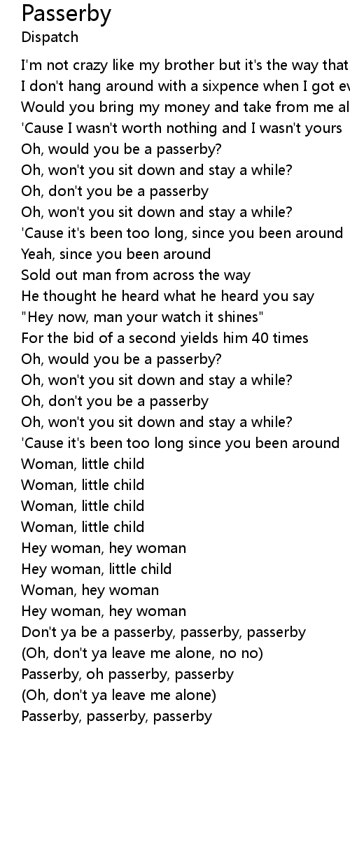 Oh, don't you be a passerby |