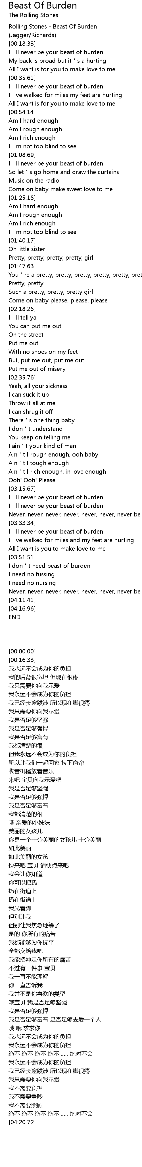 | [00:00.00] | Rolling Stones - Beast Of Burden |