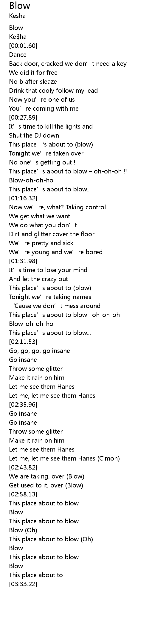 | [01:47.26] | This place’s about to blow –oh-oh-oh |
