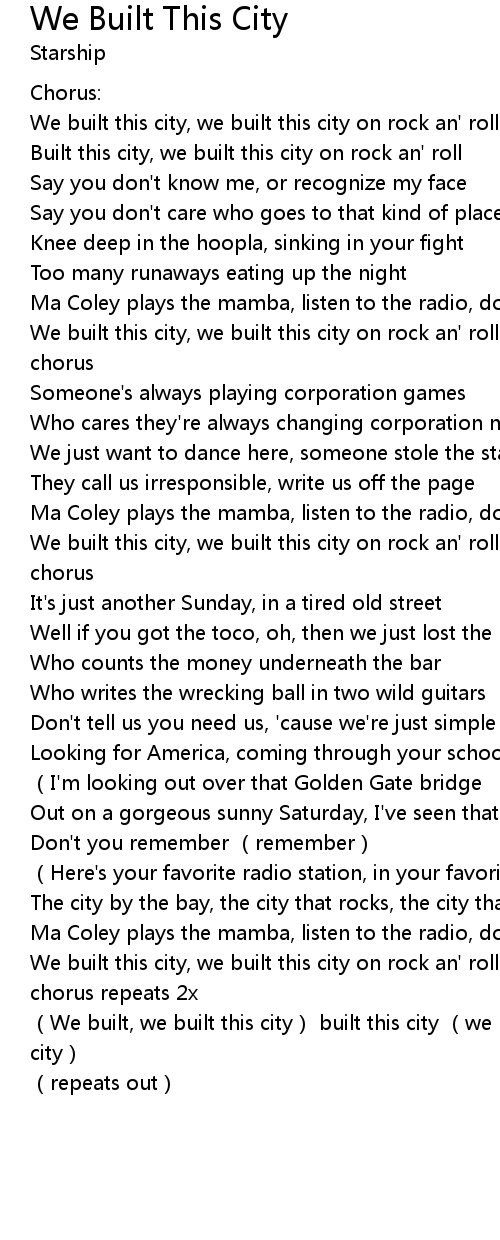 | We built, we built this city built this city we built, we built this city | |