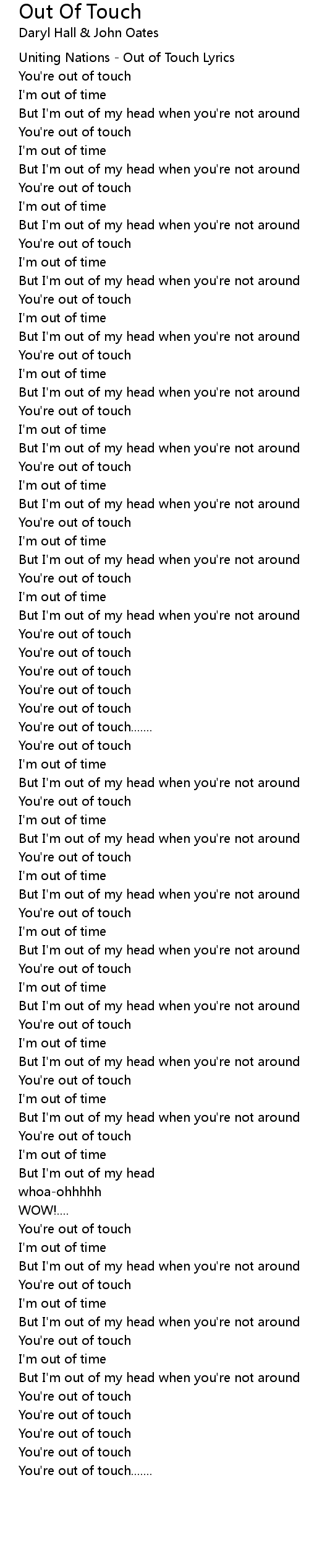 Uniting Nations - Out of Touch Lyrics |