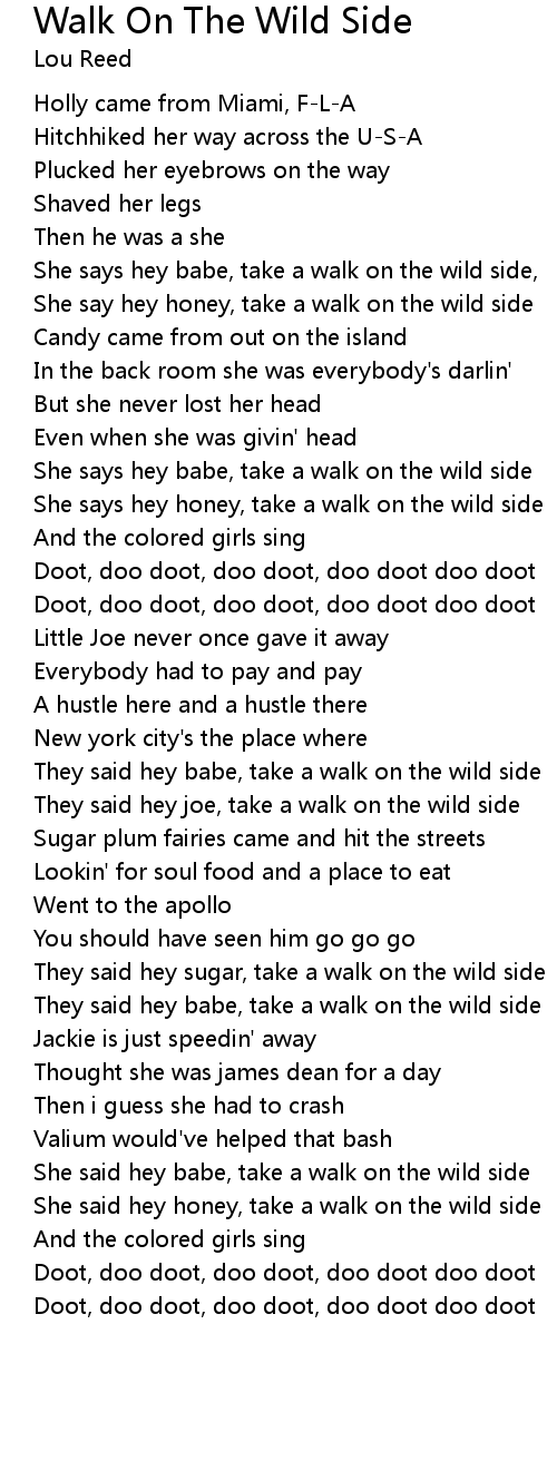 They said hey sugar, take a walk on the wild side |