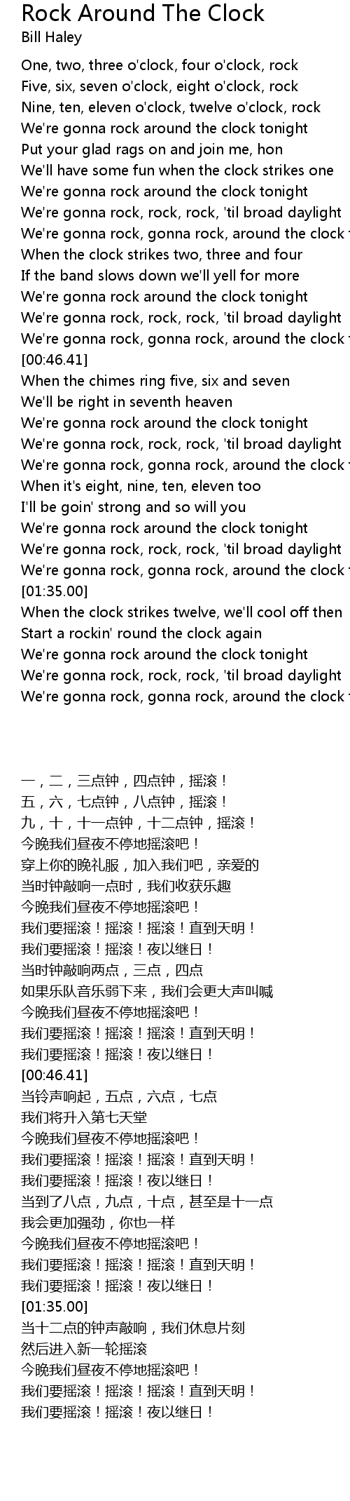 Five, six, seven o'clock, eight o'clock, rock |