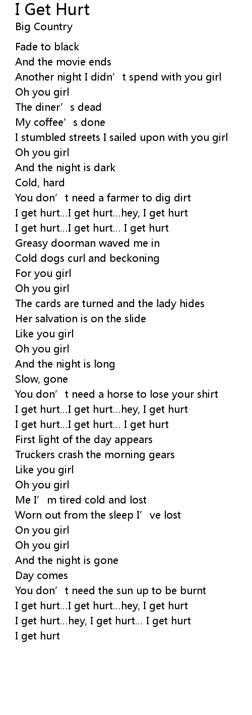 [01:12.42] I get hurt…I get hurt… I get hurt