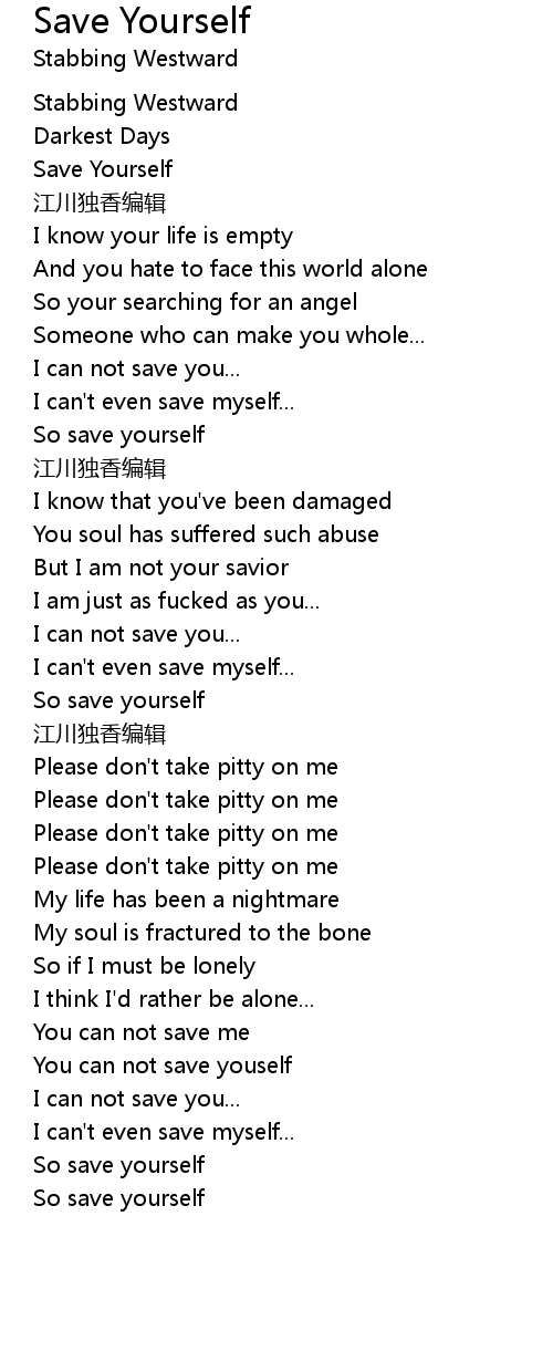 | [04:06.79] | So save yourself |