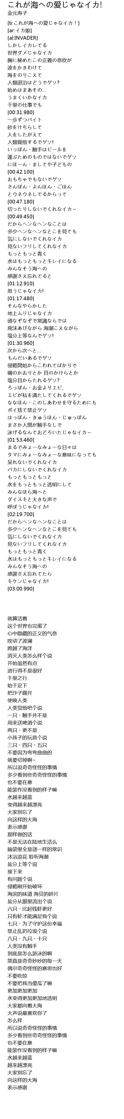 | [ti:これが海への愛じゃなイカ!] | |