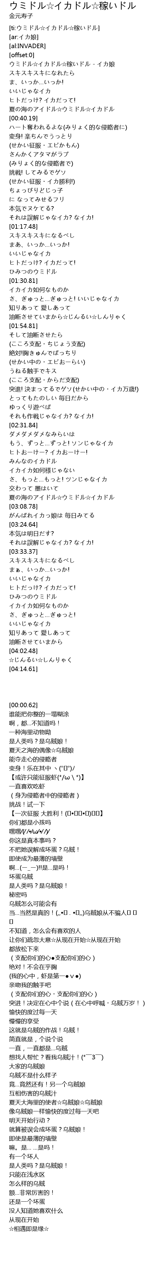 | [02:53.96] | 夏の海のアイドル☆ウミドル☆イカドル |
