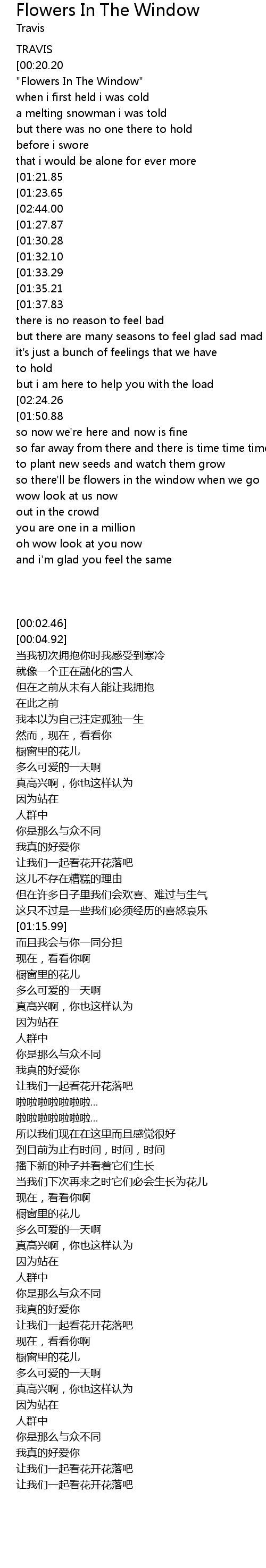 | [00:04.80][00:20.20][00:42.37][00:50.85][01:01.57][01:21.47][01:30.25][01:58.56][02:20.01][02:28.81][02:40.40][02:48.74] |